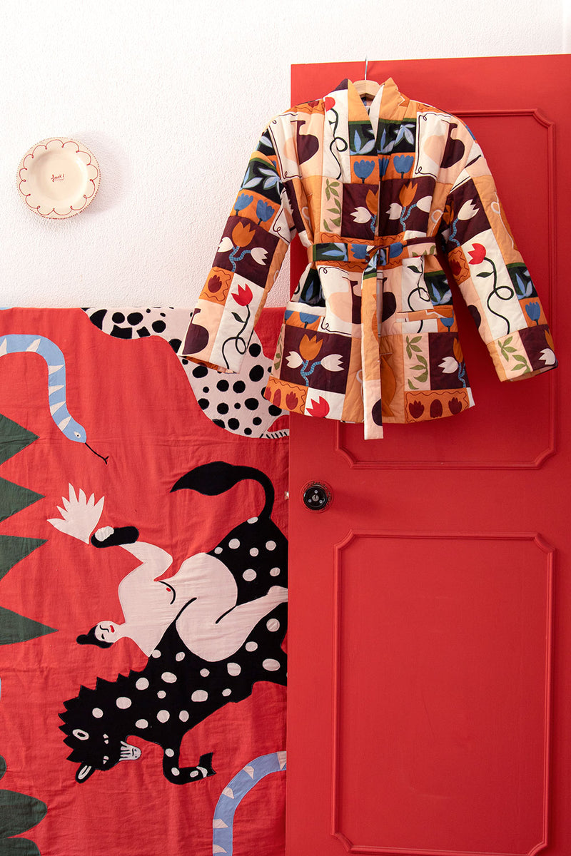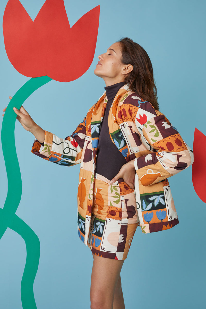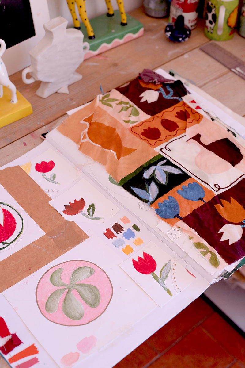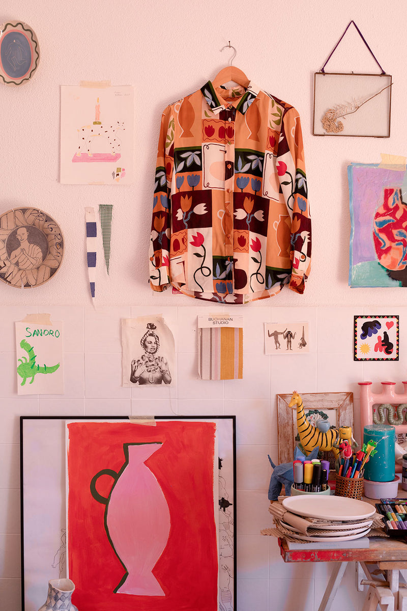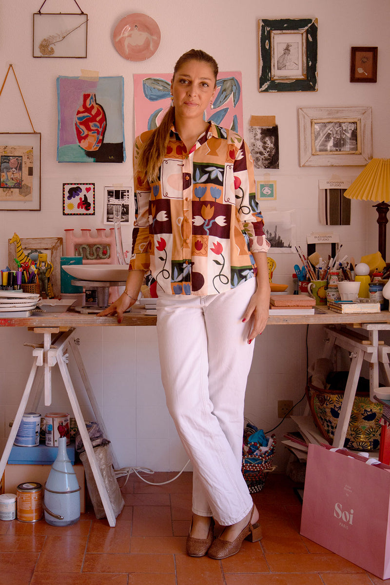 Cette rencontre entre mode et céramique célèbre l'élégance de la nature à travers des motifs inspirés des forêts de pins qui entourent l'atelier de Laetitia sur la Costa da Caparica, au Portugal.