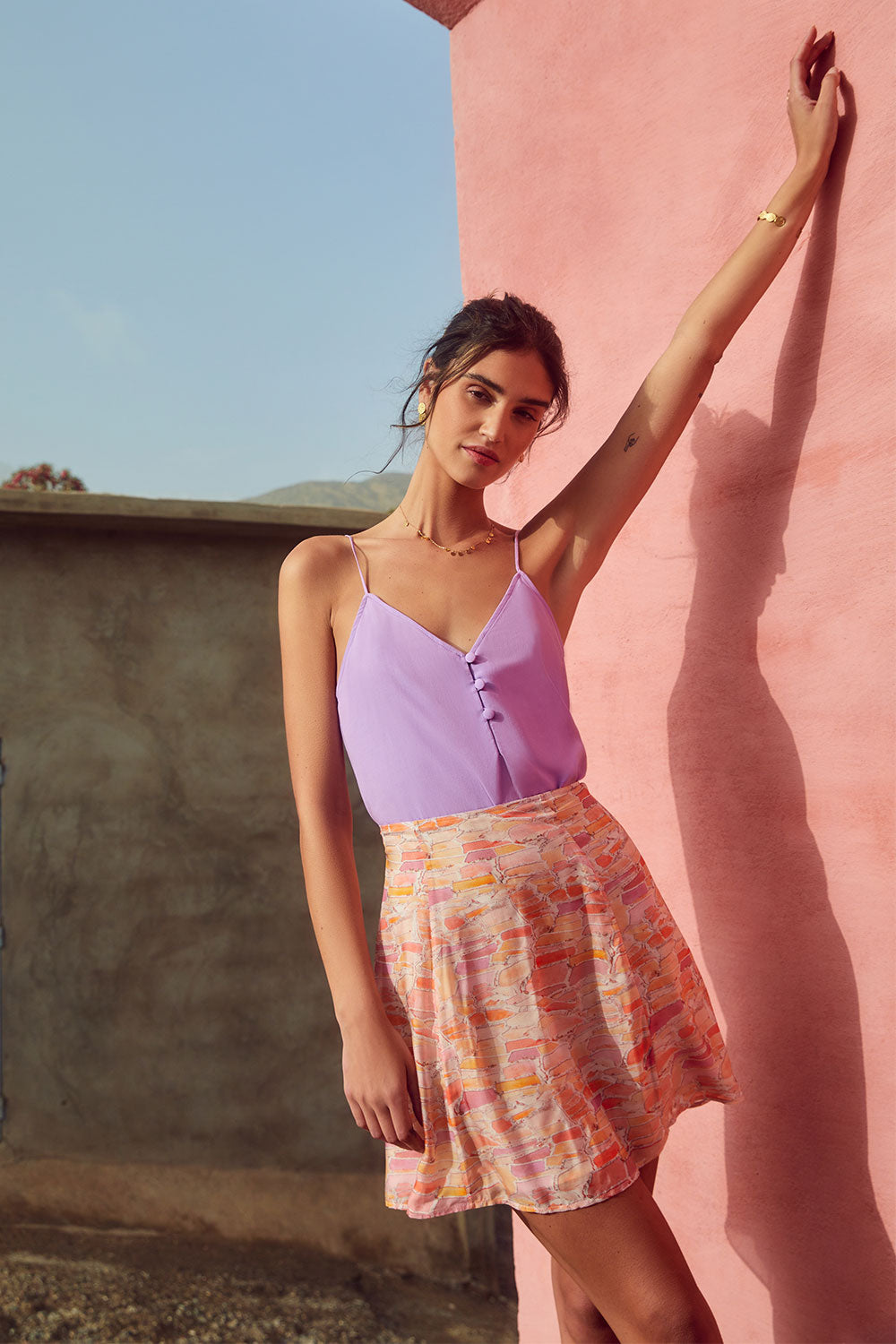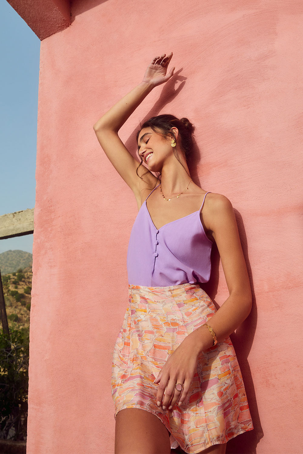 Nous avons choisi cette composition de soie et viscose pour son aspect souple et vaporeux au toucher délicat. Ce mélange d’origine naturelle est d’une extrême légèreté et permet un tombé fluide sur la peau. Ce produit est confectionné avec soin et savoir-faire en Chine dans un atelier accrédité SMETA spécialisé dans les tissus fluides et légers.