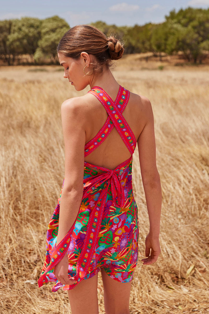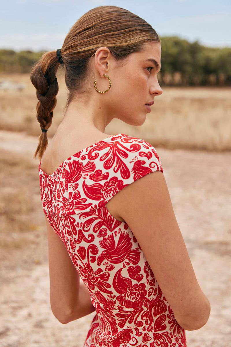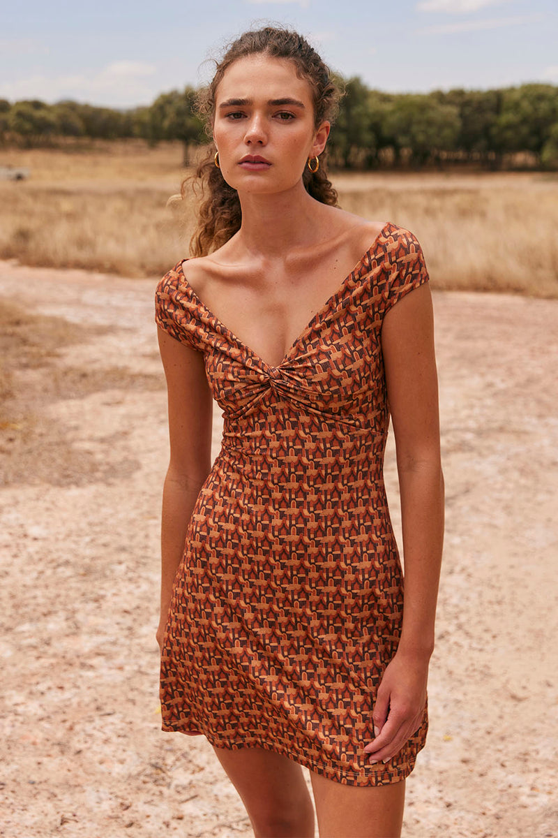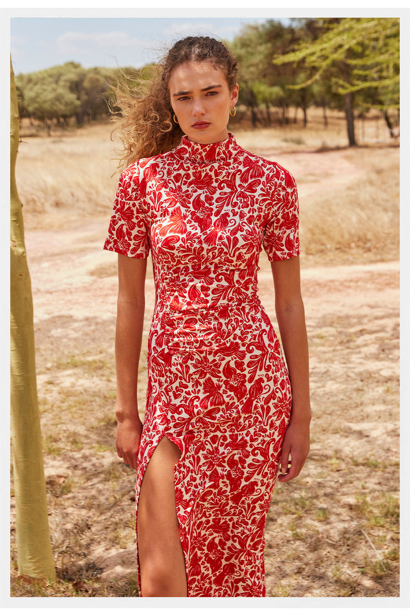 À l’heure où le soleil décline, la lumière devient plus chaude, plus intense. Les imprimés se fondent dans cette nature indomptée, les coupes suivent le corps avec fluidité et caractère. Chaque pièce accompagne le mouvement, libre et instinctif, dessinant une allure féminine, affirmée, profondément vivante.