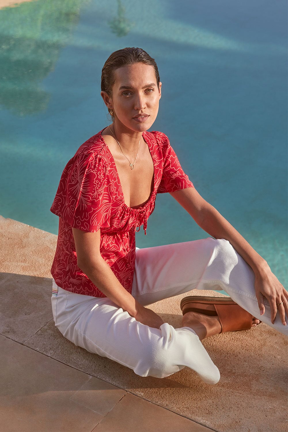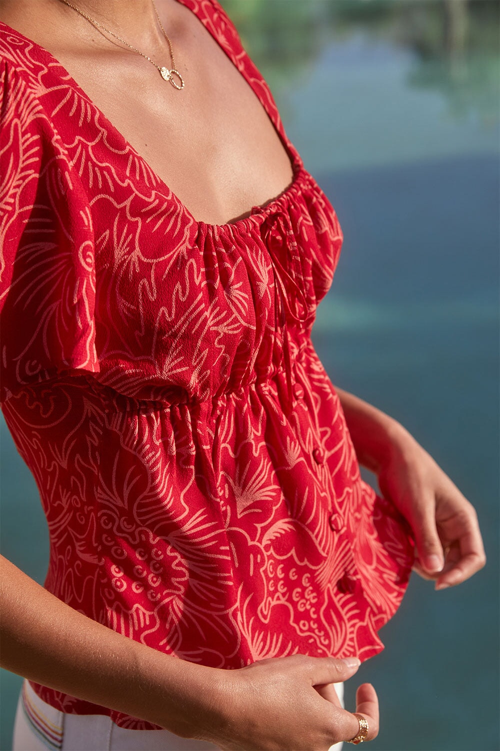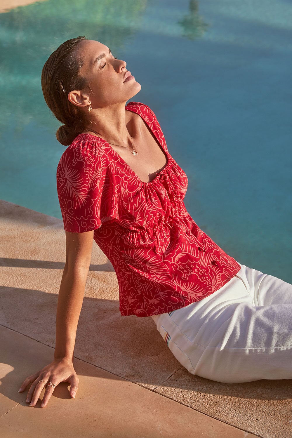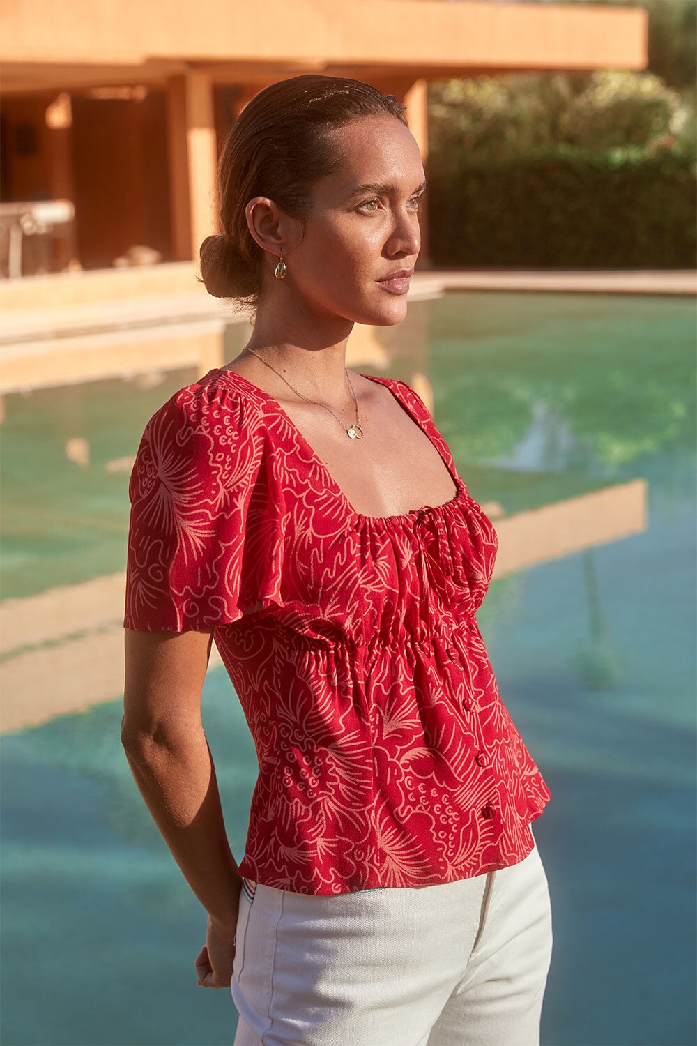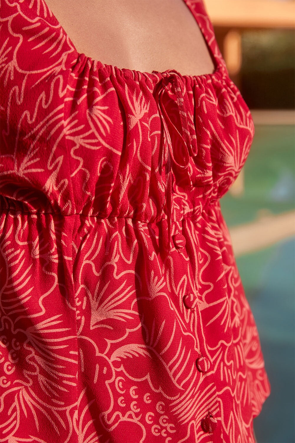 We chose this viscose crepe for its beautiful drape and natural fluidity. This slightly grainy weave is very comfortable to wear. This ECOVERO certified fabric is printed and dyed in a factory audited by 4sustainability® which certifies the elimination of toxic substances during production. This product is made with care and know-how in Romania in a GOTS certified workshop run by a woman.