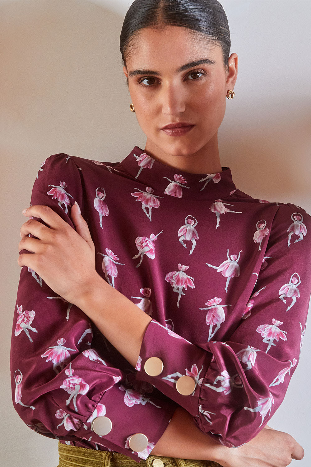 Blouse Victoire silk Ballet de Tulipes Bordeaux
