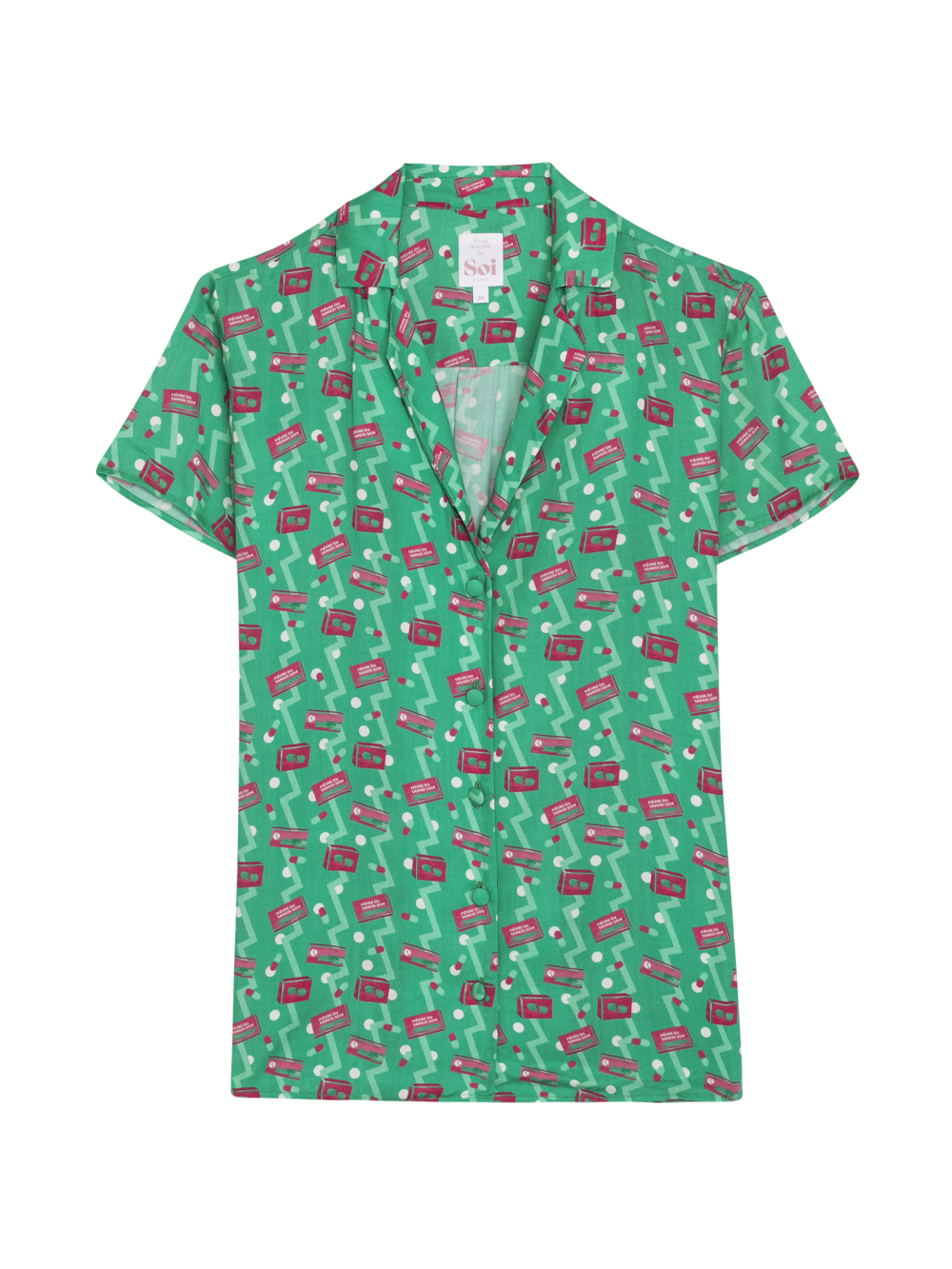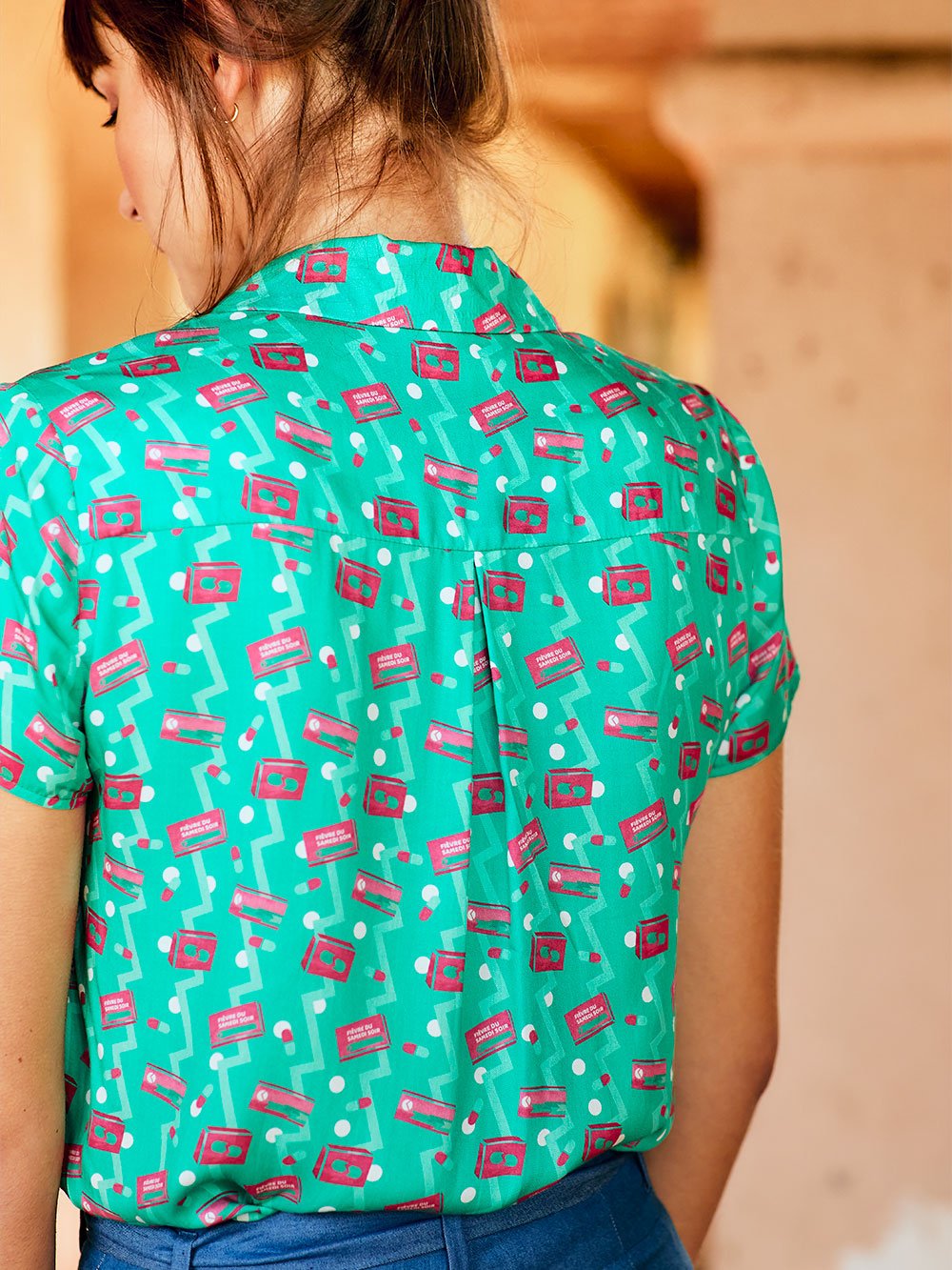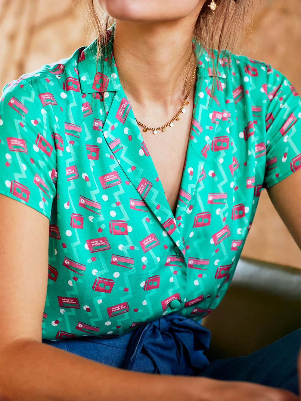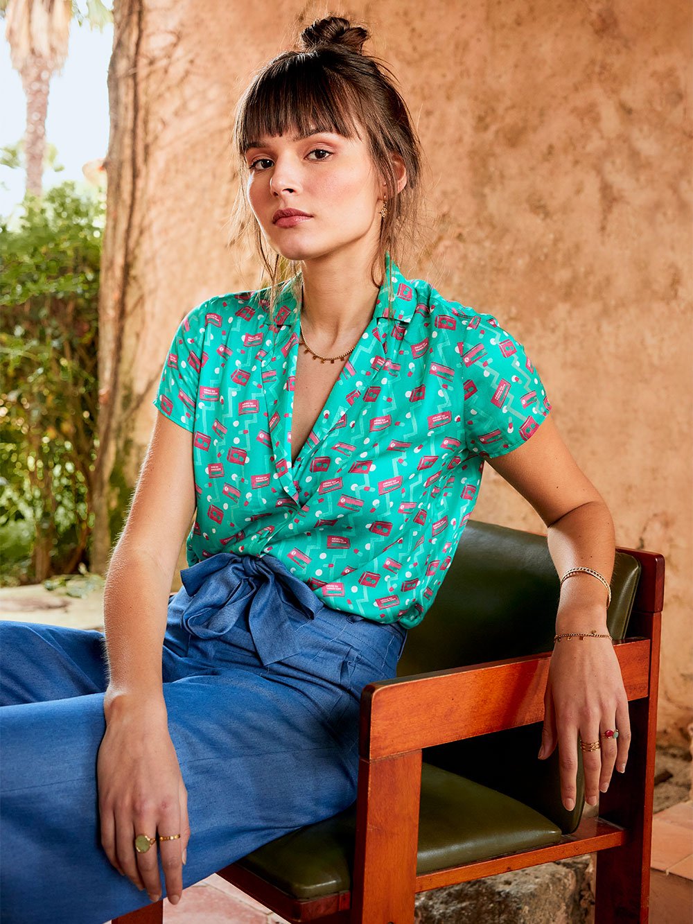 Inspirée de notre iconique chemisier, cette chemisette deviendra très vite l'un de vos indispensables de la saison. Un style rétro, un imprimé décalé, un tombé impeccable et le tour est joué !