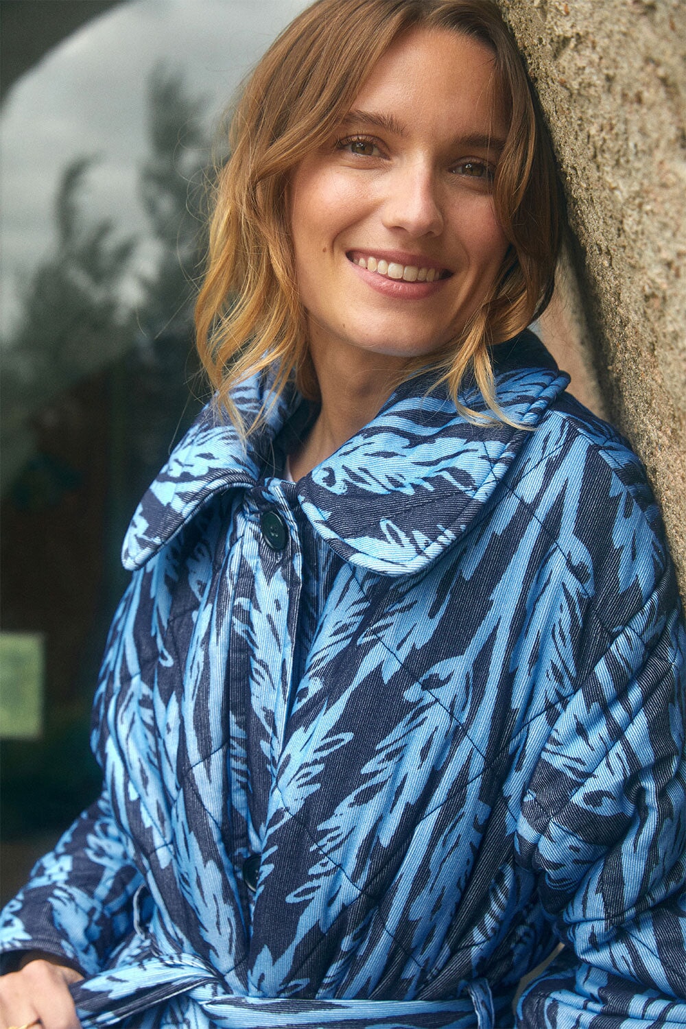 A printed fleece coat.