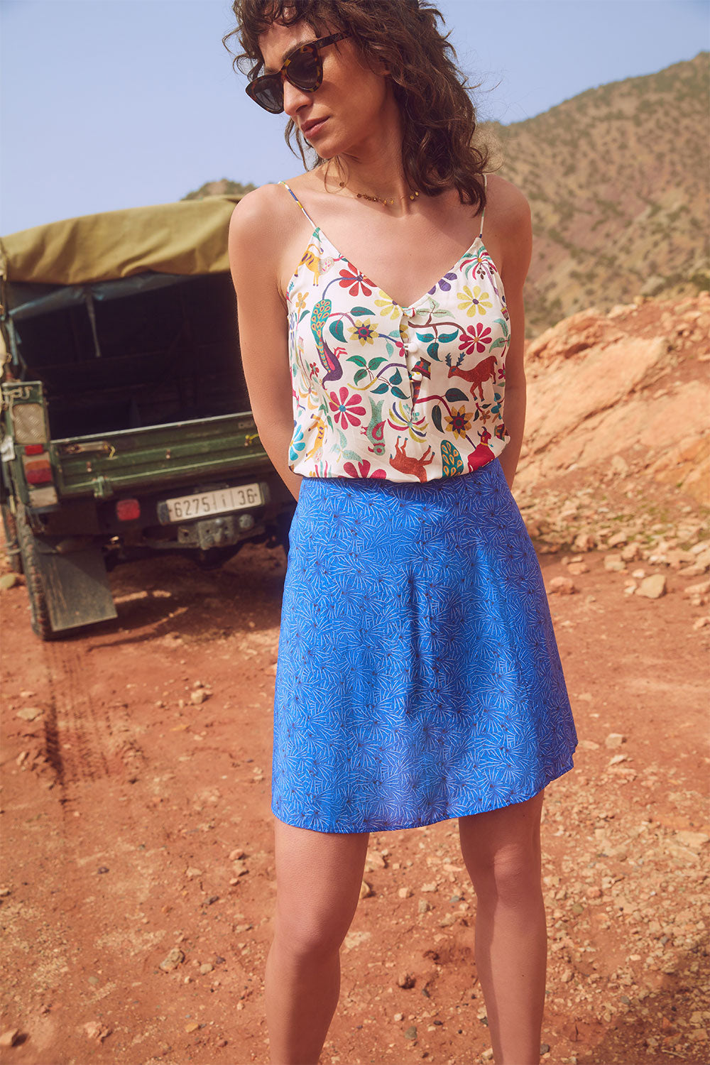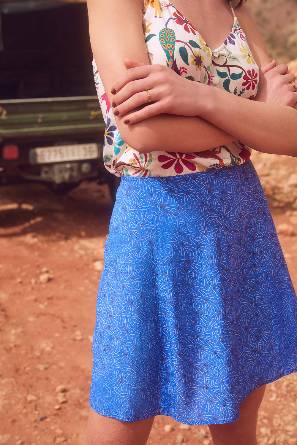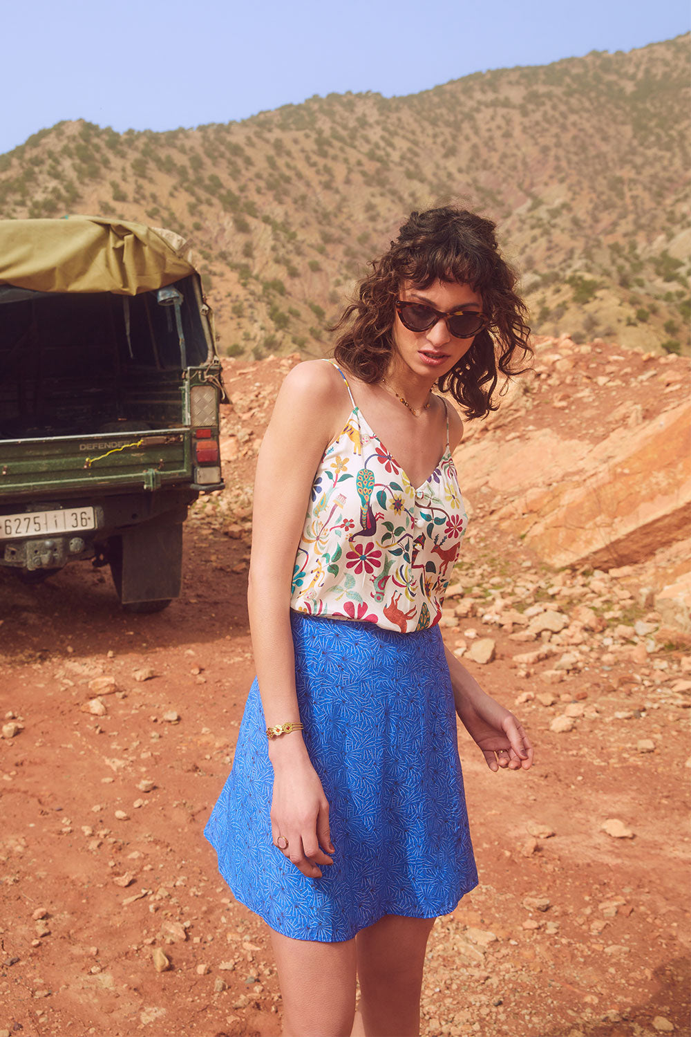 We chose this viscose for its subtle silky and shiny appearance. This viscose is printed in Italy, in the Como region, in a factory certified OEKO TEX and Chemical Management 4sustainability, which attest the elimination of harmful and toxic substances during production, guaranteeing respect for people and the environment. This product is then made with care and expertise in Europe, in an ISO 9001 and ISO 45001 certified workshop specialising in fluid and light fabrics.
