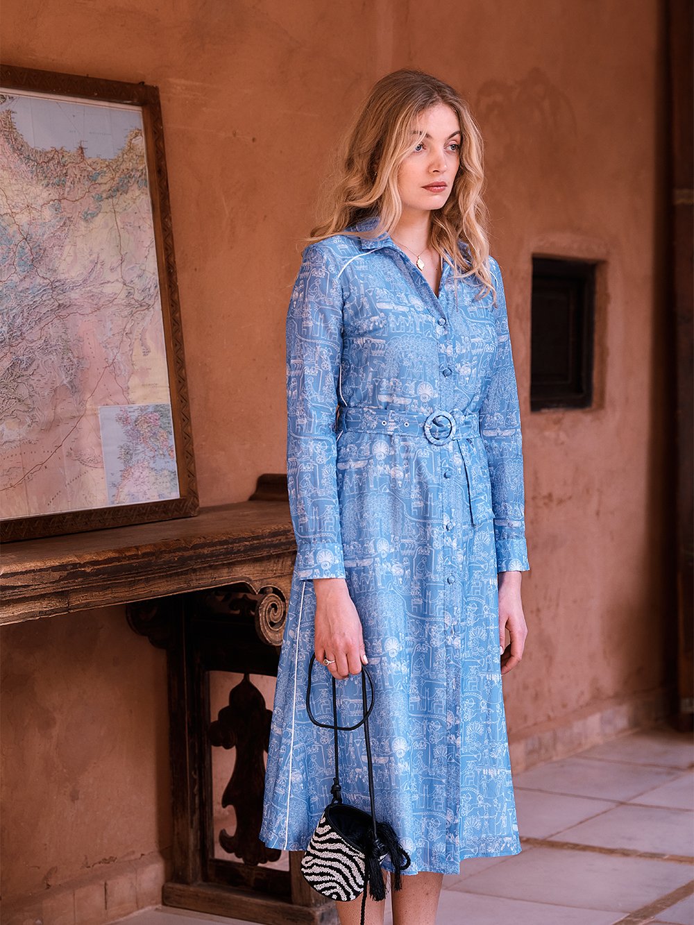 Robe Impériale imprimé Louxor Bleu