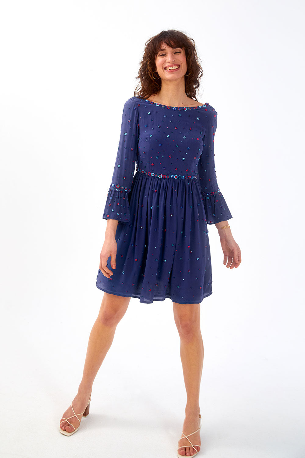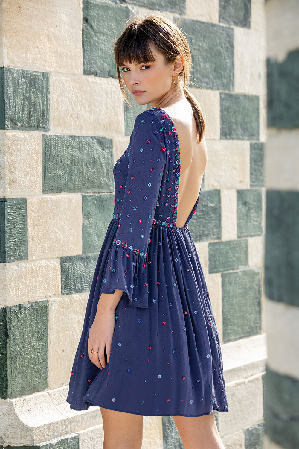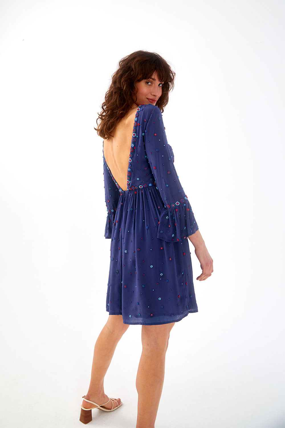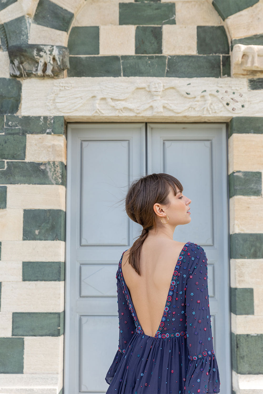 This silk with its crepe effect for its fluid drape and slightly grainy texture is woven and printed with care and expertise in an OEKO-TEX® certified factory. This certification guarantees the elimination of harmful and toxic substances during production, ensuring respect for people and the environment. This dress requires more than 50 hours of work and has been handmade in a certified workshop in India, the land of embroidery, hosting a cooperative of talented women.