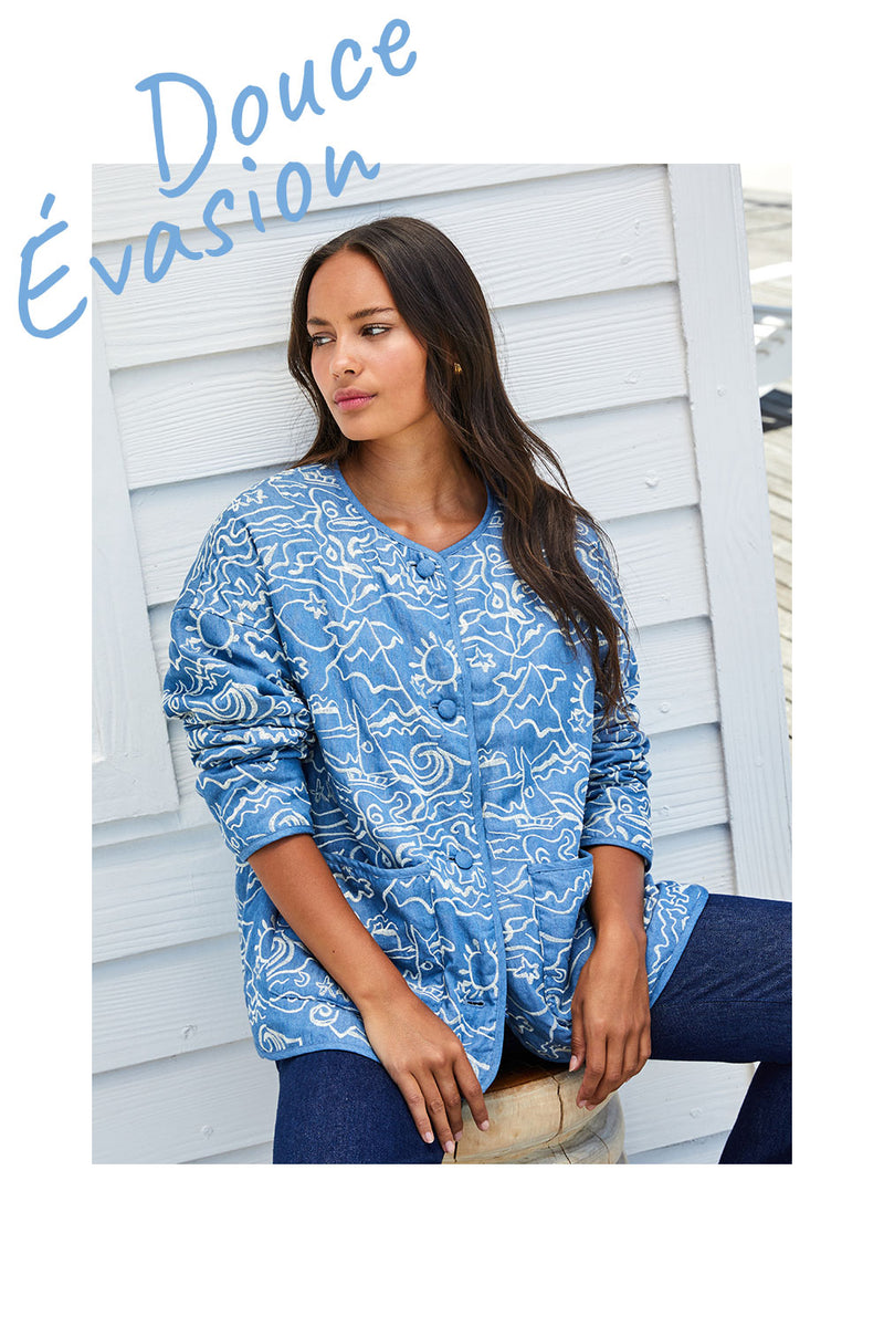 Notre nouvelle collection "Douce Evasion" incarne cette transition avec des pièces pensées pour accompagner ce passage du froid à la chaleur. Pulls doudous, vestes fluides et pantalons confortables composent un vestiaire idéal pour osciller entre l’intérieur et l’extérieur. Chaque création célèbre ce moment où l’on dévoile peu à peu la peau et où la nature reprend vie.