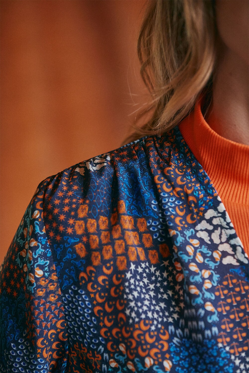 Elegimos esta seda de efecto crepé por su caída fluida y su textura ligeramente granulada. Los hilos de seda se produjeron, tejieron y estamparon en China. Este producto se fabrica con esmero y maestría en China, en un taller auditado por AMFORI (BSCI).