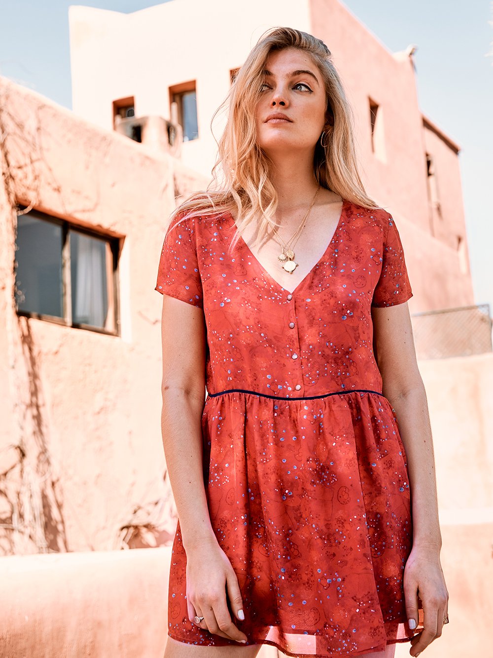 Nous avons choisi cette soie pour son aspect souple et vaporeux à l'effet seconde peau. Nous nous sommes approvisionnées au plus proche de la matière première, au royaume de la soie, en Chine. Véritables experts de la soie, nos ateliers élèvent eux-mêmes les vers à soie, tissent la soie et l'impriment dans une usine certifiée Oeko Tex, garantissant que notre tissu est exempt de produits toxiques pour le corps et pour l'environnement.
