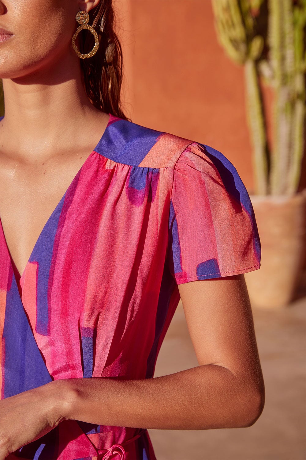 Nous avons choisi cette soie à l'effet crêpé pour son drapé fluide et sa texture légèrement granuleuse. Nous nous sommes approvisionnées au plus proche de la matière première, au royaume de la soie, en Chine. L’impression et la teinture de la soie sont certifiées OEKO-TEX®, cela correspond à un contrôle fiable et exigeant en matière de substances nocives et garantit une quantité moindre de produits chimiques nocifs dans le processus. Ce produit est confectionné en Chine dans un atelier audité AMFORI.