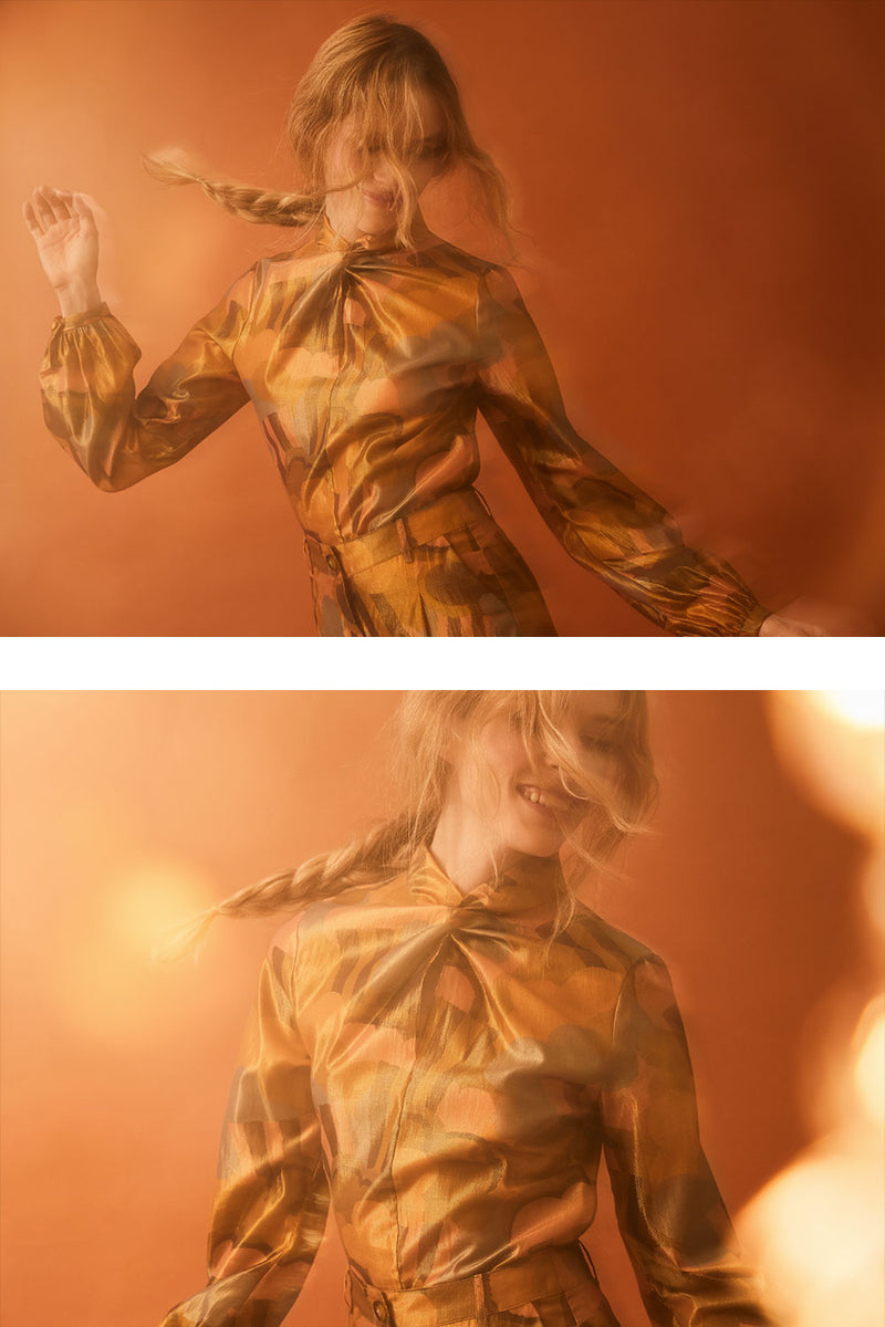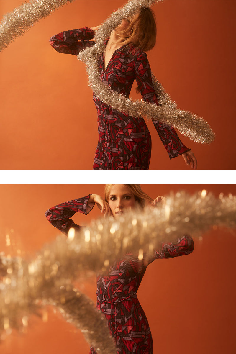 Dans cette collection, la magie de Noël prend vie, mêlant l’éclat doré des lumières festives à la douceur chaleureuse des soirées d’hiver. Inspirées par les reflets scintillants des décorations et l'effervescence des réveillons, chaque pièce capture l’esprit du Golden Christmas ! Cette capsule se caractérise par des imprimés audacieux, des matières lumineuses et des coupes qui dansent au rythme des fêtes. Chaque création est une ode à l’allégresse des fêtes de fin d’année, où chaque détail est pensé pour capturer la magie et la rendre palpable.