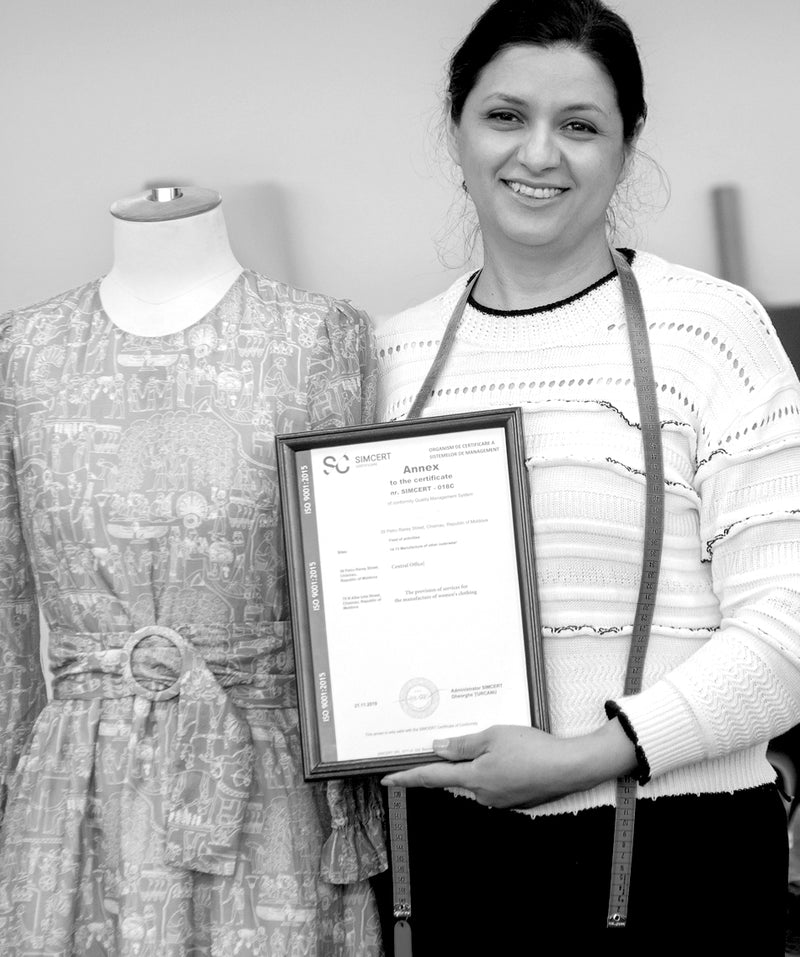 Cet atelier familial Européen est dirigé par une femme, Georgeta. Dès la première rencontre, nous avons été impressionnées par cette femme qui est non seulement à la tête d’un atelier de 130 personnes, mais a également créé sa marque de prêt-à-porter avec succès dans son pays. Formée à Londres et passionnée de mode féminine, elle se spécialise dans la confection de pièces fluides. Sa rigueur et son expertise lui ont permis de travailler pour de grandes marques françaises. Nous collaborons avec elle depuis plusieurs années.