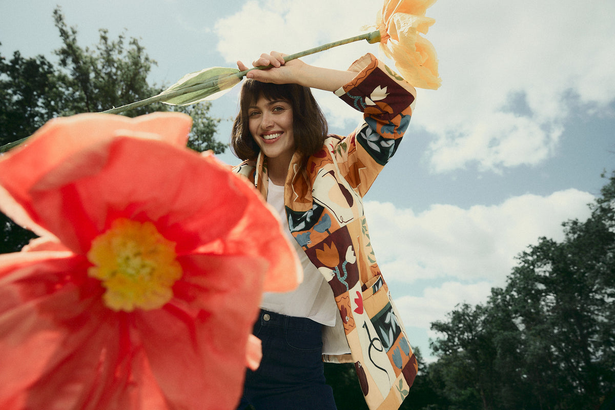 Dans ce drôle de potager aux allures rétro, les légumes se camouflent dans un puzzle de teintes chaudes où chacun trouvera son bonheur. Une balade spéciale dans un jardin qui ne l’est pas moins, à la recherche des ingrédients de nos recettes d’enfance. Julia a dessiné cet imprimé au feutre.