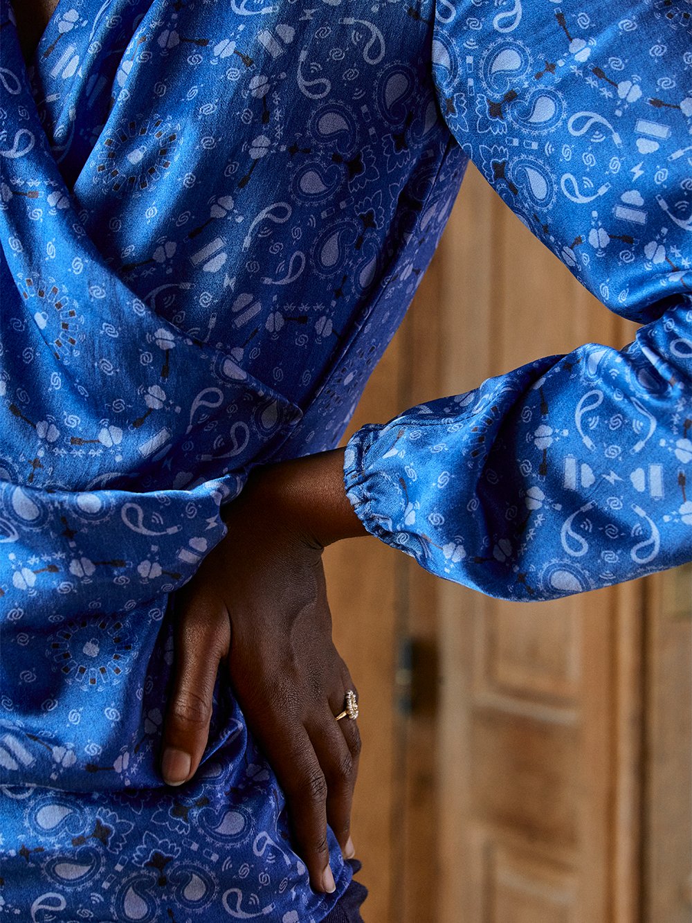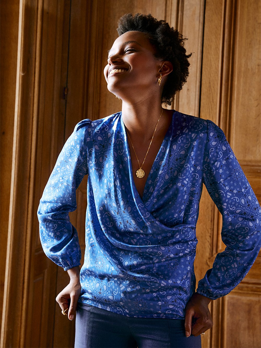 Nous avons choisi d’associer ces matières pour un toucher peau de pêche, un aspect satiné et un tissu respirant. Le cupro, comme la rayonne, est une matière d’origine végétale. Le fil de cupro est obtenu par le tissage des fibres de cellulose provenant de la fleur de coton. La production du cupro permet d’utiliser ces graines habituellement considérées comme inutilisables et donc jetées. Associé à la rayonne, on obtient une combinaison parfaite pour des vêtements fluides mais assez épais pour vous tenir chaud l’hiver.