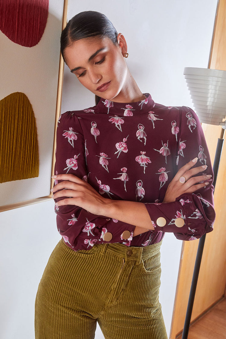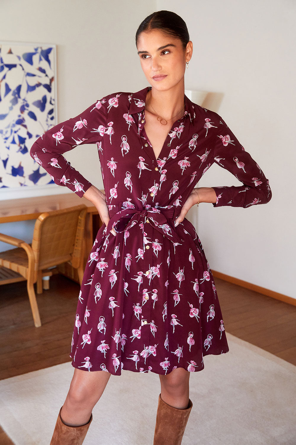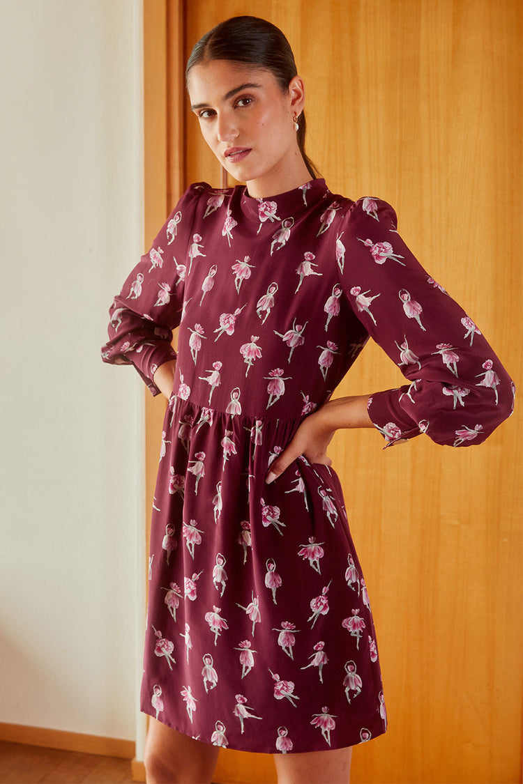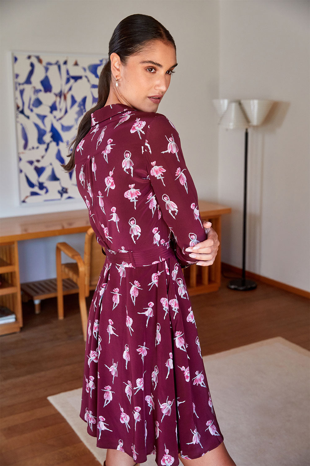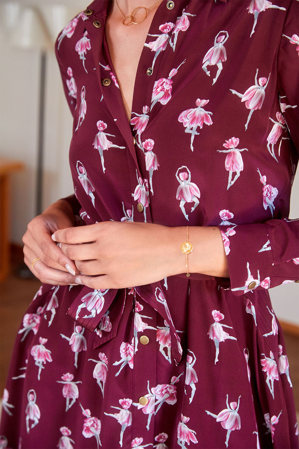 Robe L'Imprévisible en soie Ballet de Tulipes Bordeaux