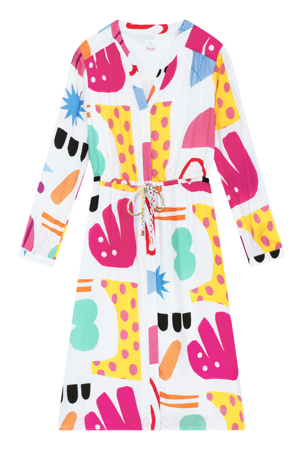 Un cordon coloré tressé au niveau de la taille.